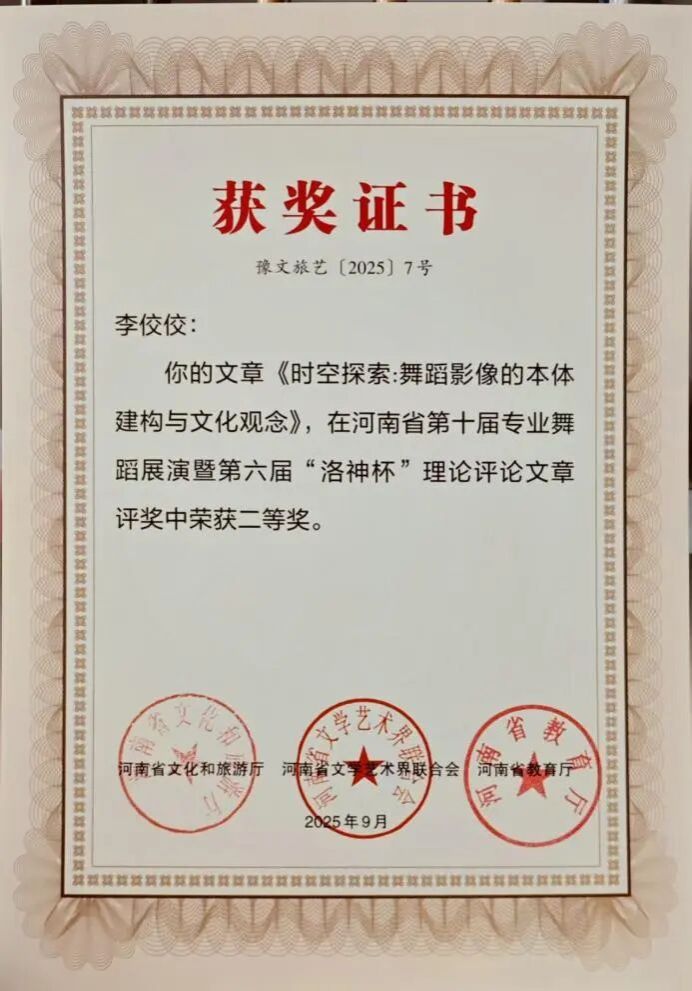 二等奖1项:《时空探索:舞蹈影像的本体建构与文化观念》;
