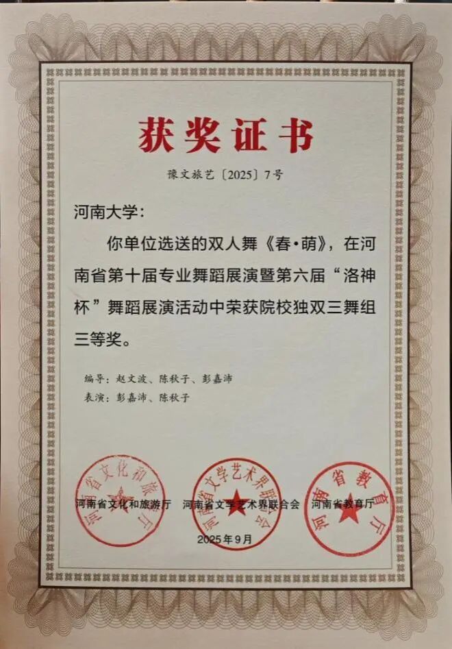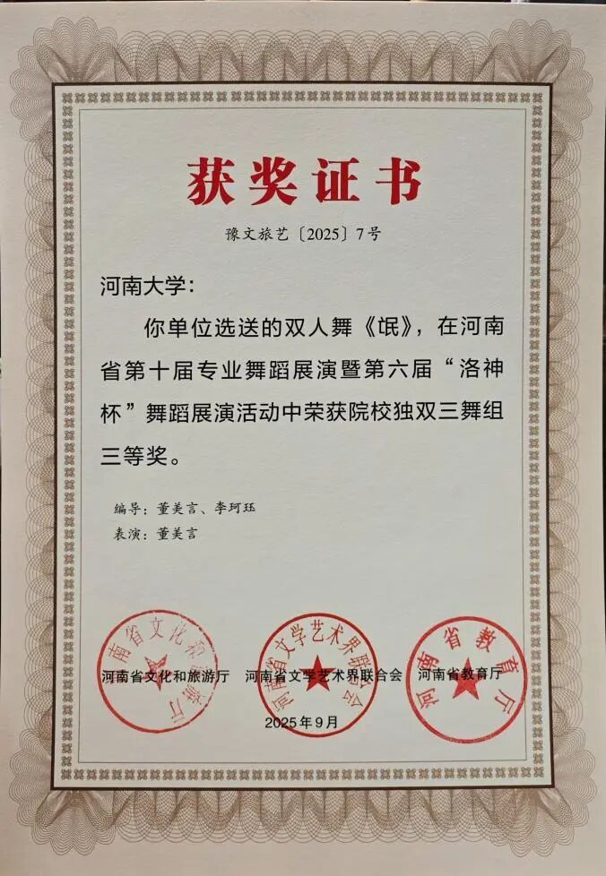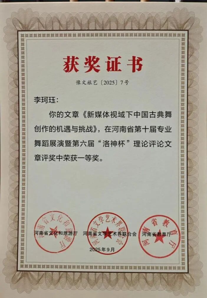 此次双科奖项的获得,是体育博彩平台排名 舞蹈系多年来坚守“创作与科研并重、实践与理论双驱”的丰硕成果。未来,舞蹈系将以此为新起点,持续发挥专业优势,在推动学院舞蹈教育高质量发展的进程中主动担当,在传承创新中原优秀传统文化的道路上稳步前行,为行业培养更多高素质人才,贡献更多富有感染力与文化底蕴的艺术成果。