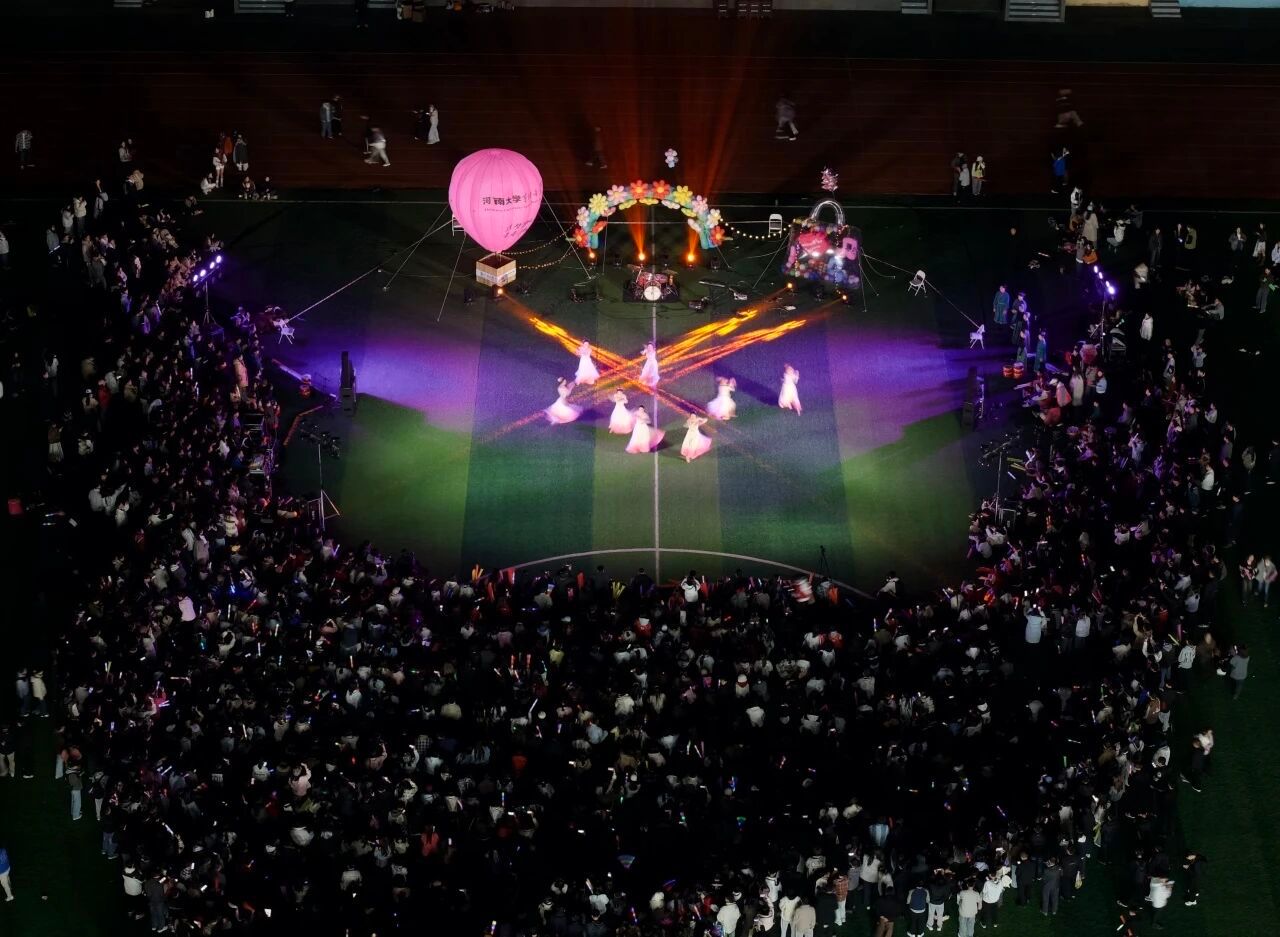 主办的河南大学草坪音乐节,在郑州校区操场精彩上演。校党委书记季波、党委副书记杨萌芽以及相关职能部门、院系主要负责人与现场的2300余名学生共同观看了此次音乐节。