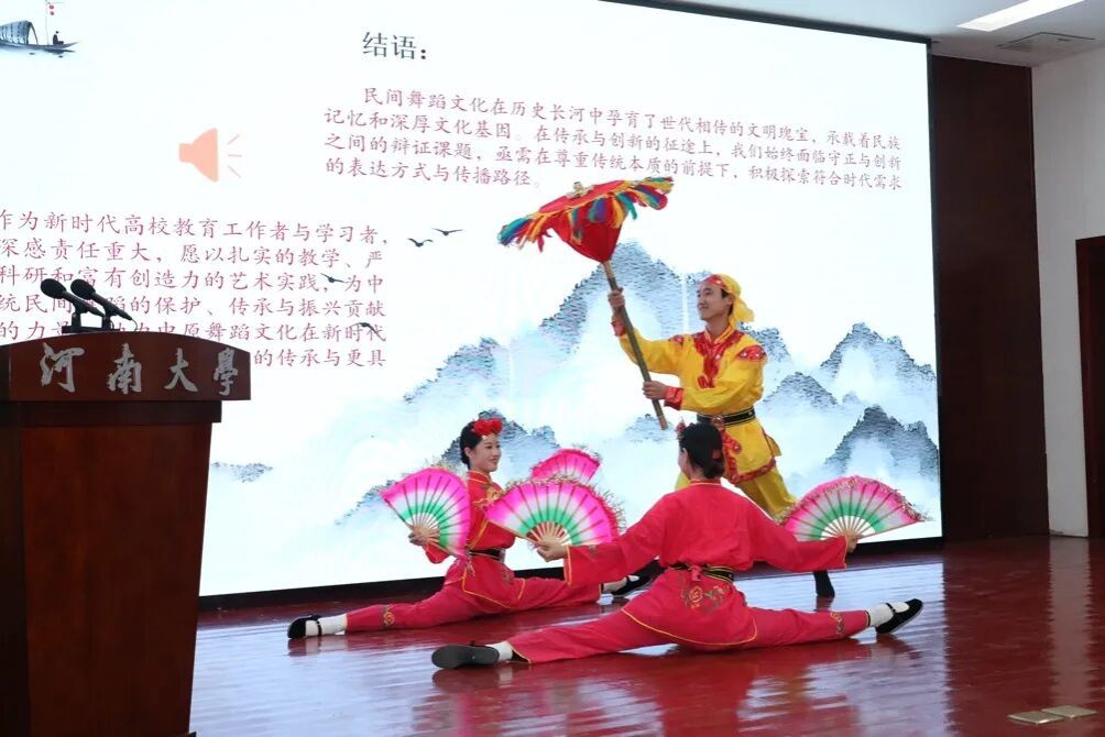 舞蹈编导专业硕士研究生范璐璐、范婧、汤欣甜主讲的《声声“回”响——南顿秧歌手铃道具的探索创新》,立足河南回族南顿秧歌的原生风貌,提炼步伐、手铃、面纱等元素,并将手铃道具在传统基础上融入五彩飘带与铃铛,通过上下摇、左右晃、碎步摇铃等动作设计发展动作,力求既保留民俗韵味,又增强舞台表现力。